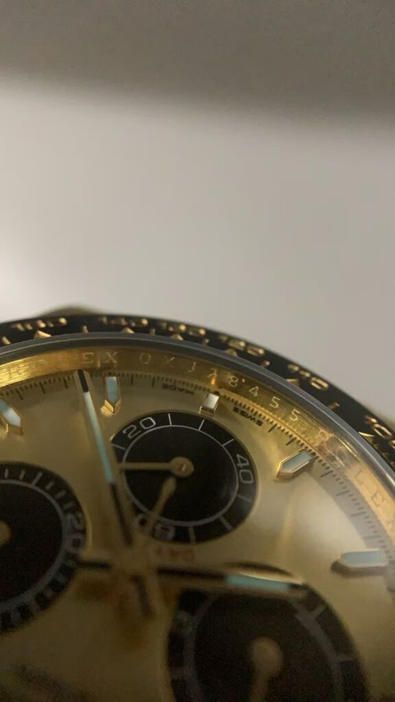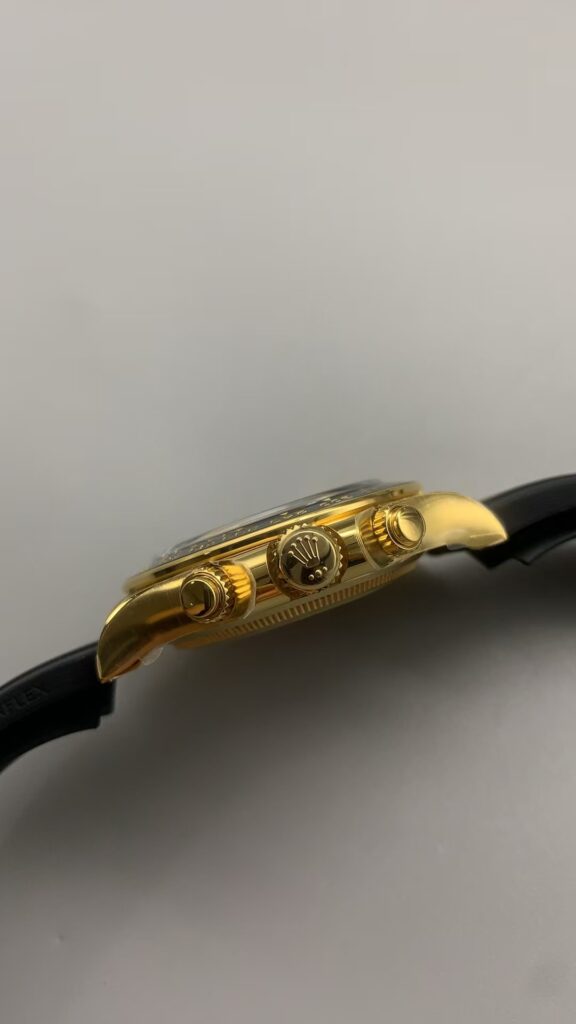 そんなAR工場が、最近ディトナに進出しています。Clean工場の閉鎖を機に、迅速な対応を見せました。ムーブメントはDD4131を採用し、精度と安定性を確保できます。ケースのサイドビューでは、金の輝きとブラックベゼルのコントラストが本物級で、ロレックス スーパークローンのファンなら一目で魅了されるはずです。