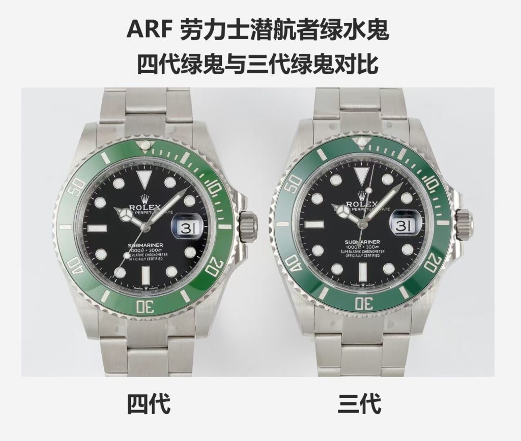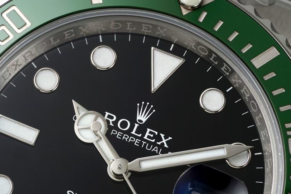 AR工場のサブマリーナ レプリカV4バージョンの最大のハイライトは、緑セラミックベゼルの進化です。V3バージョンの深いダークグリーンから、V4バージョンの鮮やかなエメラルドグリーンへシフトし、V1のクラシックスタイルにオマージュを捧げています。このエメラルドグリーンはより若々しく活力に満ち、ビジネスシーンからカジュアルまで幅広く対応できます。V3の落ち着いた雰囲気に対し、V4はファッション性を強調し、視線を集める存在感を発揮します。AR工場は、セラミック焼成温度を何度も調整し、自然光や室内照明下での色再現を正品に限りなく近づけました。こうしたこだわりが、ロレックス スーパークローンとしての本物らしさを高めています。